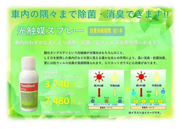 快適にお車にお乗りいただけるように車内の除菌メニューもあります。小さなお子様をお乗せするお客様に好評のメニューです。お気軽にお問い合わせください!