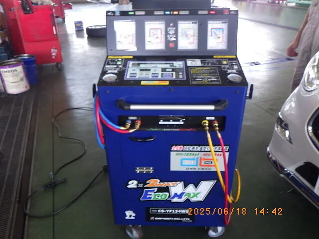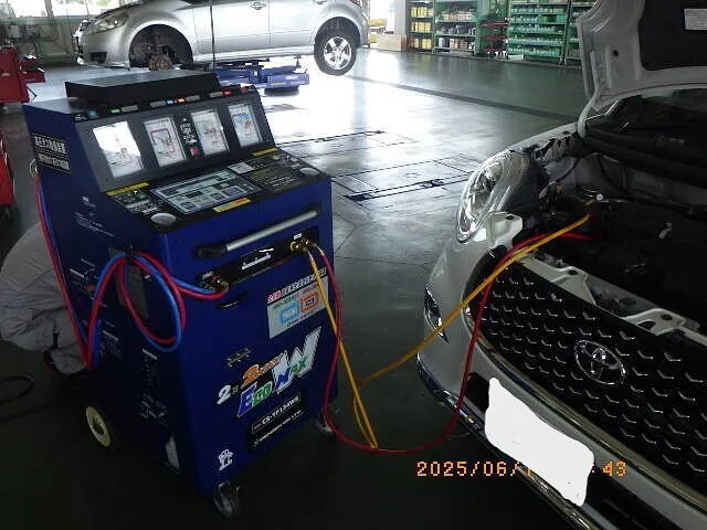 エアコンガスが規定量が入っているか確認して、エアコンフィルターに汚れ、つまりがが無いか確認して仕上げをしていきます。